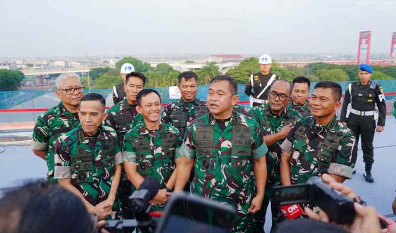 Divianews.com | Palembang — Pangdam II/Sriwijaya Mayjen TNI Ujang Darwis, M.D.A., bersama Ketua Persit KCK PD II/Sriwijaya Ny. Desi Ujang Darwis, mendampingi Kepala Staf Angkatan Darat (Kasad) Jenderal TNI Maruli Simanjuntak, M.Sc., dan Ketua Umum Persit Kartika Chandra Kirana Ny. Uli Simanjuntak, dalam kegiatan Topping Off Ceremony pembangunan Poliklinik Terpadu MCU dan Rawat Inap Eksekutif Rumah Sakit TK. II dr. AK Gani, yang berlokasi di Jalan dr. AK Gani No. 1, Ilir Timur I, Kota Palembang, Rabu (05/11/2025).