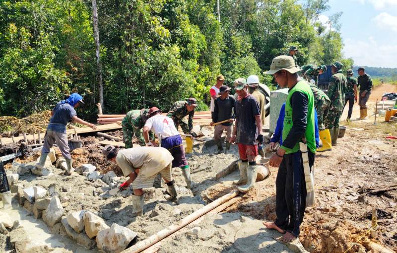 Personel Kodim 0432/Bangka Selatan bersama masyarakat setempat bahu-membahu mempercepat akses transportasi antar-desa tersebut. Kerja sama yang solid ini menjadi bukti nyata kemanunggalan TNI dengan rakyat, di mana setiap tetes keringat yang mengalir ditujukan untuk kesejahteraan dan kemajuan infrastruktur di wilayah Bangka Selatan.