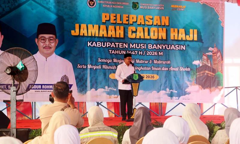 Divianews.com | Sekayu Muba – Sebanyak ratusan calon jamaah haji asal Kabupaten Musi Banyuasin secara resmi dilepas keberangkatannya oleh Wakil Bupati Muba Abrur Rohman Husen. Pelepasan Jamaah Calon Haji Asal Kabupaten Muba Tahun 1447 H / 2026 M digelar di Hotel Gambo Sekayu, Minggu (26/4/2026).