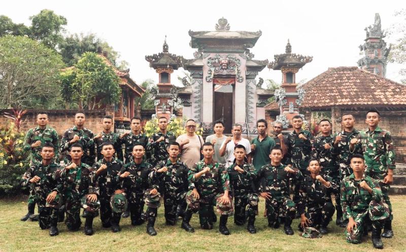 Prajurit TNI bersama masyarakat sekitar melakukan gotong royong membersihkan area pura, memperbaiki fasilitas, dan perbaikan sarana prasarana.